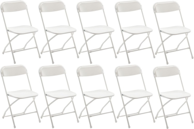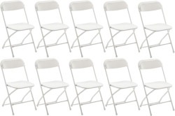 Chairs -- White Folding Metal & PlasticWipe Out / Spheres Of Doom Obstacle Course:Chairs -- White Folding Metal & Plastic1Dropdown01182719_7810310000 Light weight and stackable. White. Metal frame with plastic seat and back. 48 available.